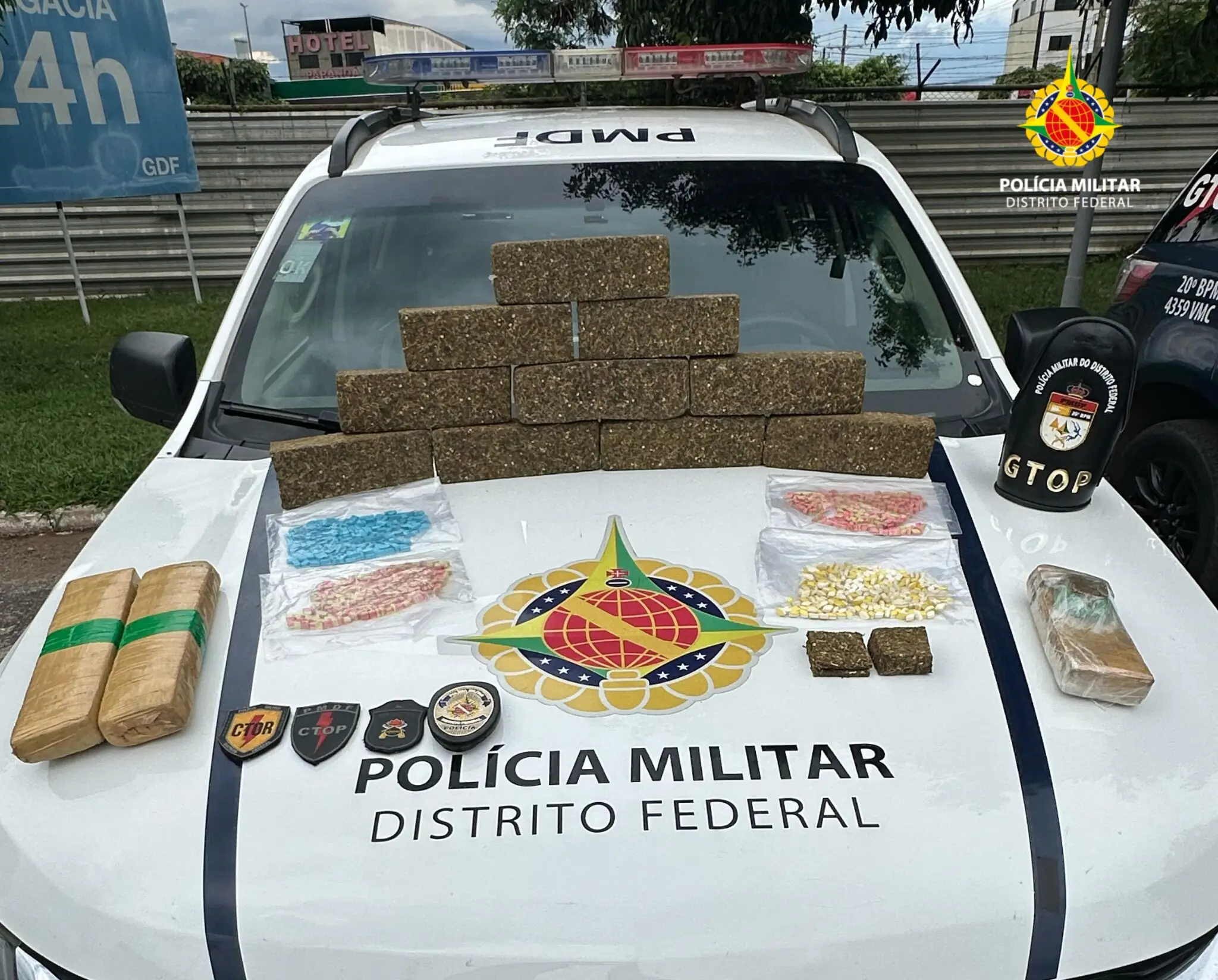 Dentro dos veículos o Gtop 40 apreendeu 13 tijolos de maconha, mil comprimidos de ecstasy e quatro frações menores de maconha. O trio foi encaminhado para a 6ª DP onde foram autuados por tráfico de drogas.